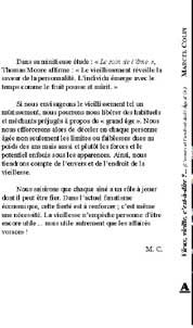 Si nous envisageons le vieillissement tel un mûrissement, nous