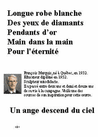 Léveillé. Intitulé « Mélodie inachevée », ses dimensions sont de 18" par 14". Vous pouvez visualiser une de ses toiles (et les commentaires appropriés) donnée à la Ville de Saint-Jean-sur-Richelieu en activant l'hyperlien : http://www.ville.saint-jean-sur-richelieu.qc.ca/toile.htm |