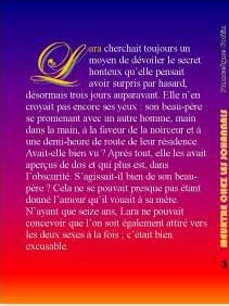 Elle n’en croyait pas encore ses yeux : son beau-père se promenant avec un autre homme, main dans la main, à la faveur de la noirceur et à une demi-heure de route de leur résidence. Avait-elle bien vu ? Après tout, elle les avait aperçus de dos et qui plus est, dans l’obscurité. S’agissait-il bien de son beau-père ? Cela ne se pouvait presque pas étant donné l’amour qu’il vouait à sa mère. N’ayant que seize ans, Lara ne pouvait concevoir que l’on soit également attiré vers les deux sexes à la fois ; c’était bien excusable.